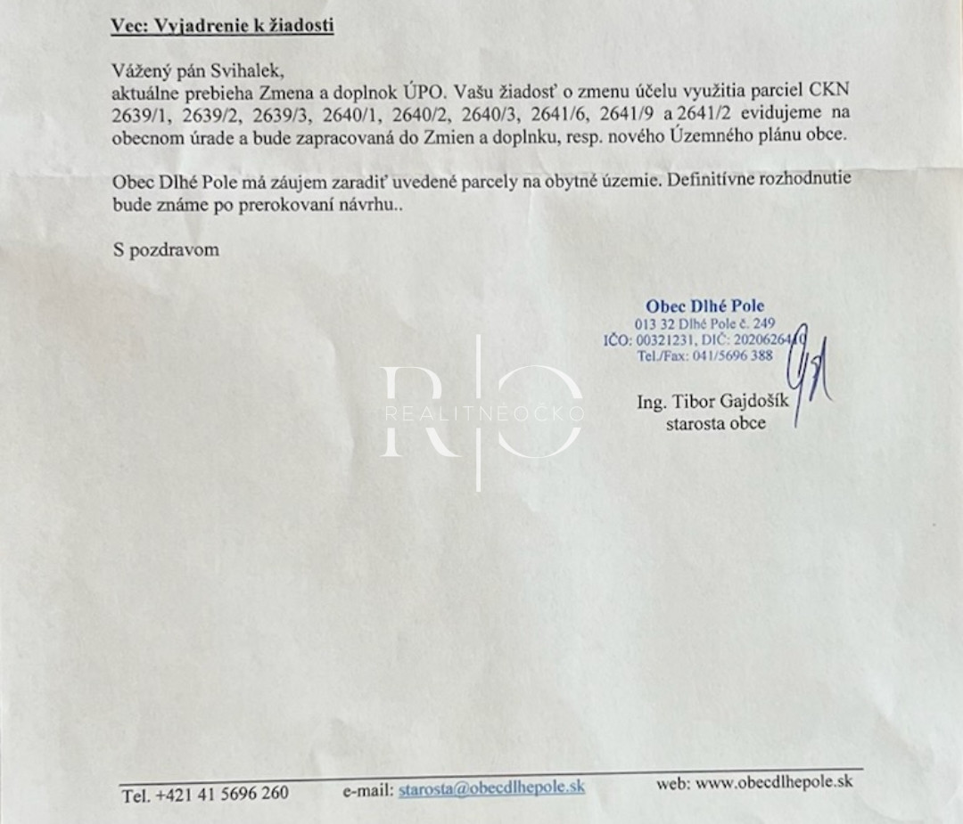 Kancelária Realitné očko Vám ponúka na predaj dva stavebné pozemky v obci Dlhé Pole, vzdialenej len 16 km od krajského mesta Žilina a 15 km od mesta Bytča.