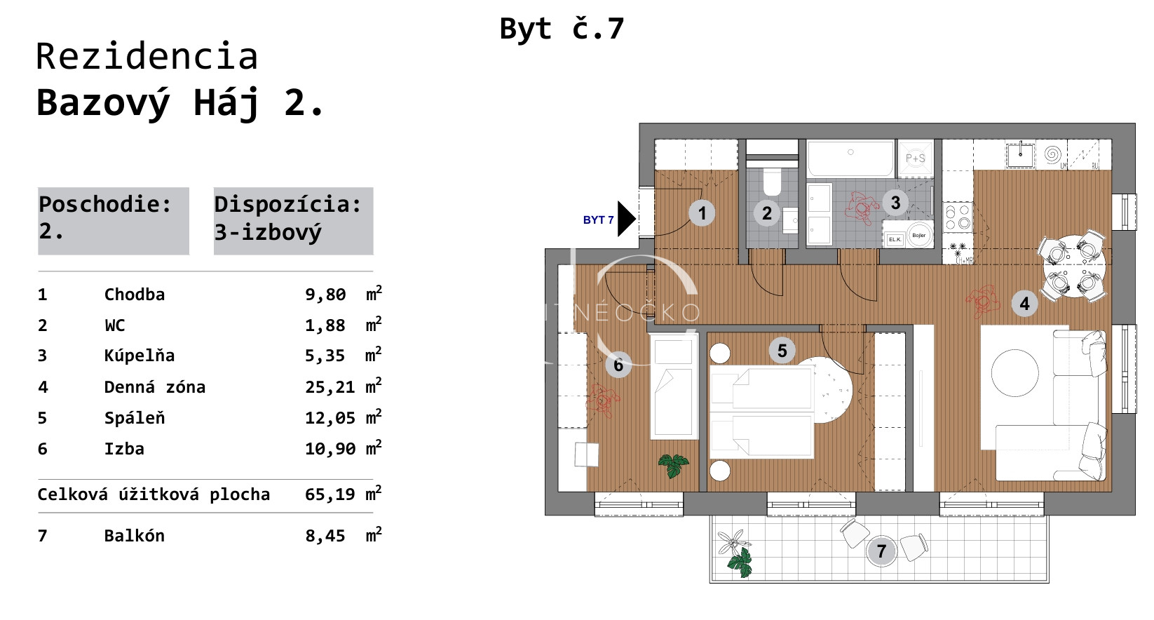 Na predaj moderný 3 izbový byt na 2 poschodí o výmere 65,19 m2 v Rezidencii Bazový háj – Bzovík