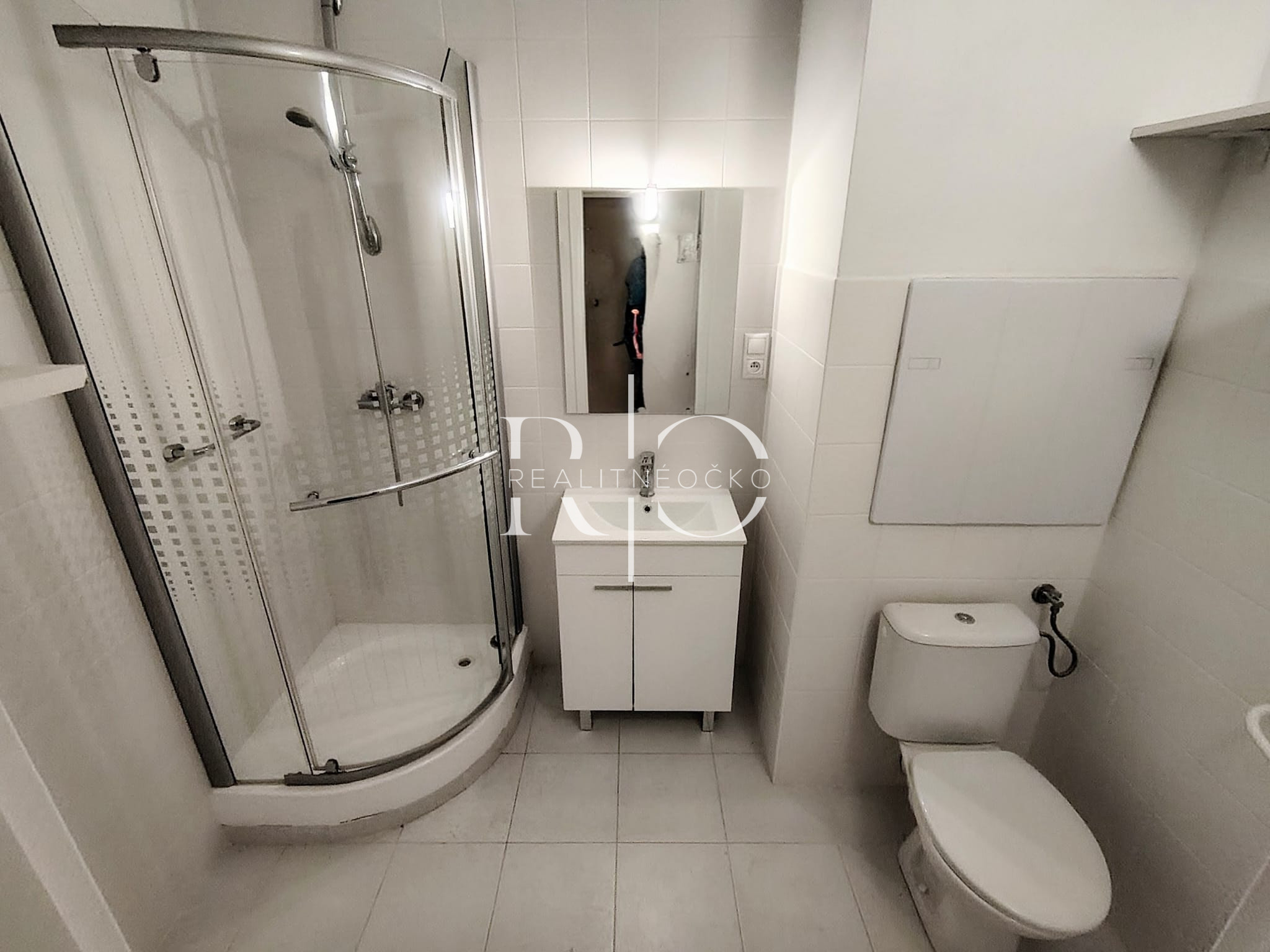 Kúpeľňa: sprchový kút, umývadlo, práčka, toaleta