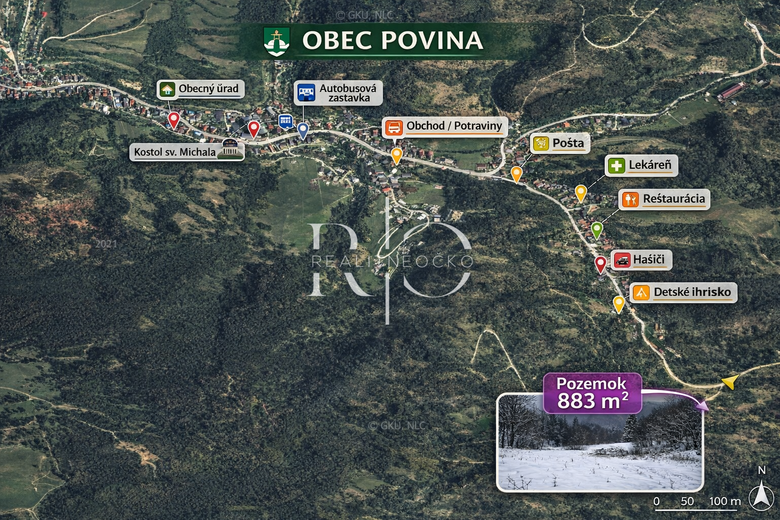 Pozemok sa nachádza v okrajovej časti obce Povina, len 6 km (cca 10 minút) od mesta Kysucké Nové Mesto. Situovaný je v pokojnej lokalite uprostred prírody, s krásnym výhľadom a v blízkosti zástavby rodinných domov, čo zaručuje príjemné bývanie v tichom prostredí mimo ruchu mesta.